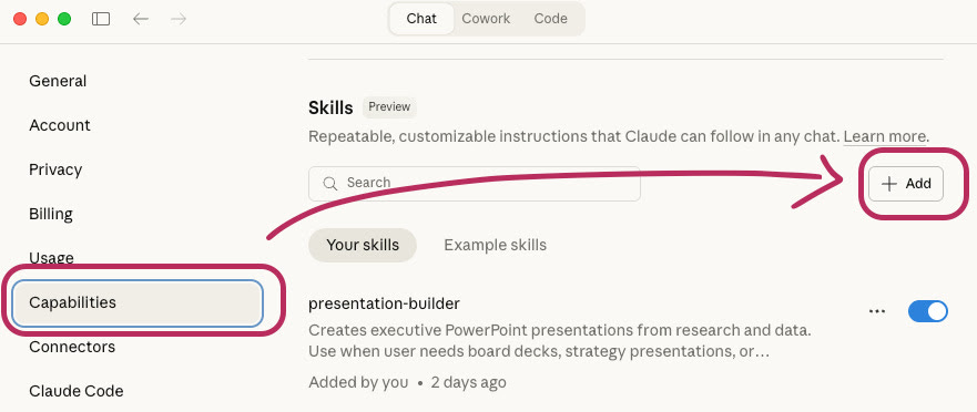 - העלו את ה-Skill ל-Claude.