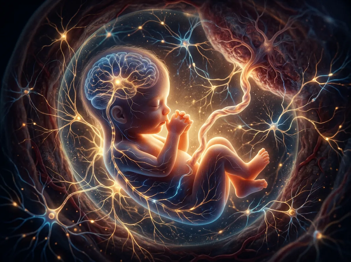 המוח של עובר ברחם אמו הוא, מבחינה נוירולוגית, מבנה של כ-86 מיליארד נוירונים המחוברים בחיבורים ראשוניים, לא מאורגנים, כמעט אקראיים. אין בו עדיין מפות חושיות מפורטות, אין בו ייצוגים מוגדרים של פנים, צלילים, ריחות. הוא פתוח באופן מילולי לכל כיוון.