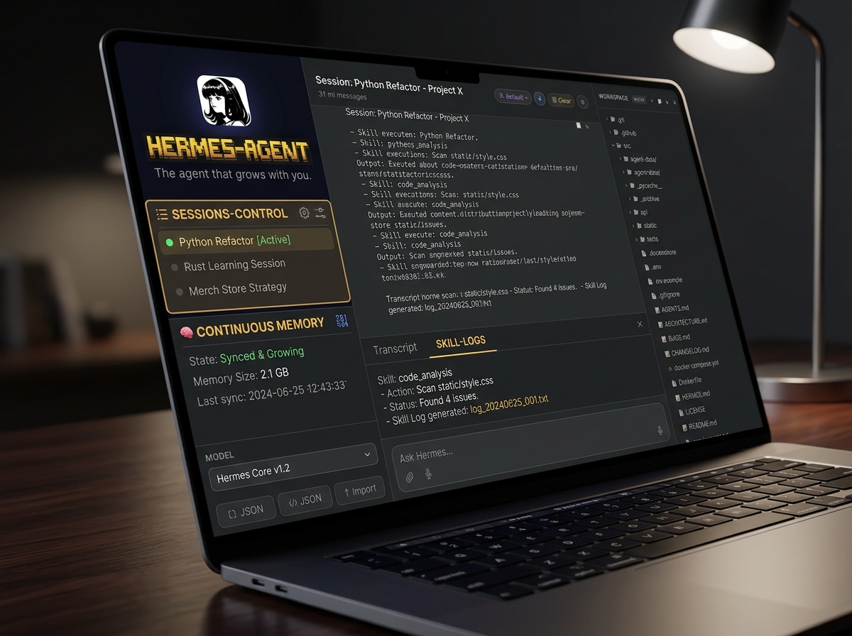 בעוד OpenClaw התמקד ברוחב האינטגרציות, Hermes Agent התמקד בעומק הלמידה. הסלוגן של הפרויקט, "the agent that grows with you", מתאר ארכיטקטורה הבנויה סביב לולאת למידה סגורה. שלושה רכיבים מפעילים את הלולאה הזו: